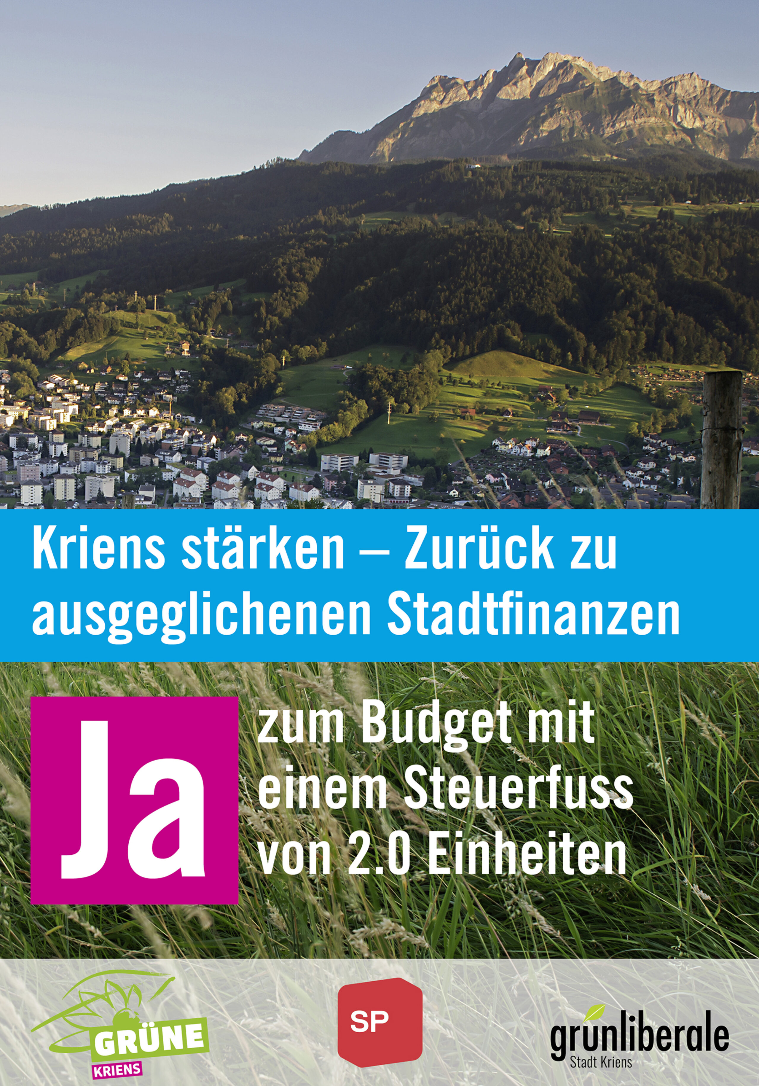 Um als eigenständige Stadt Kriens handlungsfähig zu bleiben. Braucht es die Mehreinnahmen einer Steuererhöhung. Zusammen mit den Sparmassnahmen und einer zuverlässigen Finanzstrategie kann die Stadt Kriens so seinen Leistungsstand weiterhin halten. Als guter Ort zum Leben.
